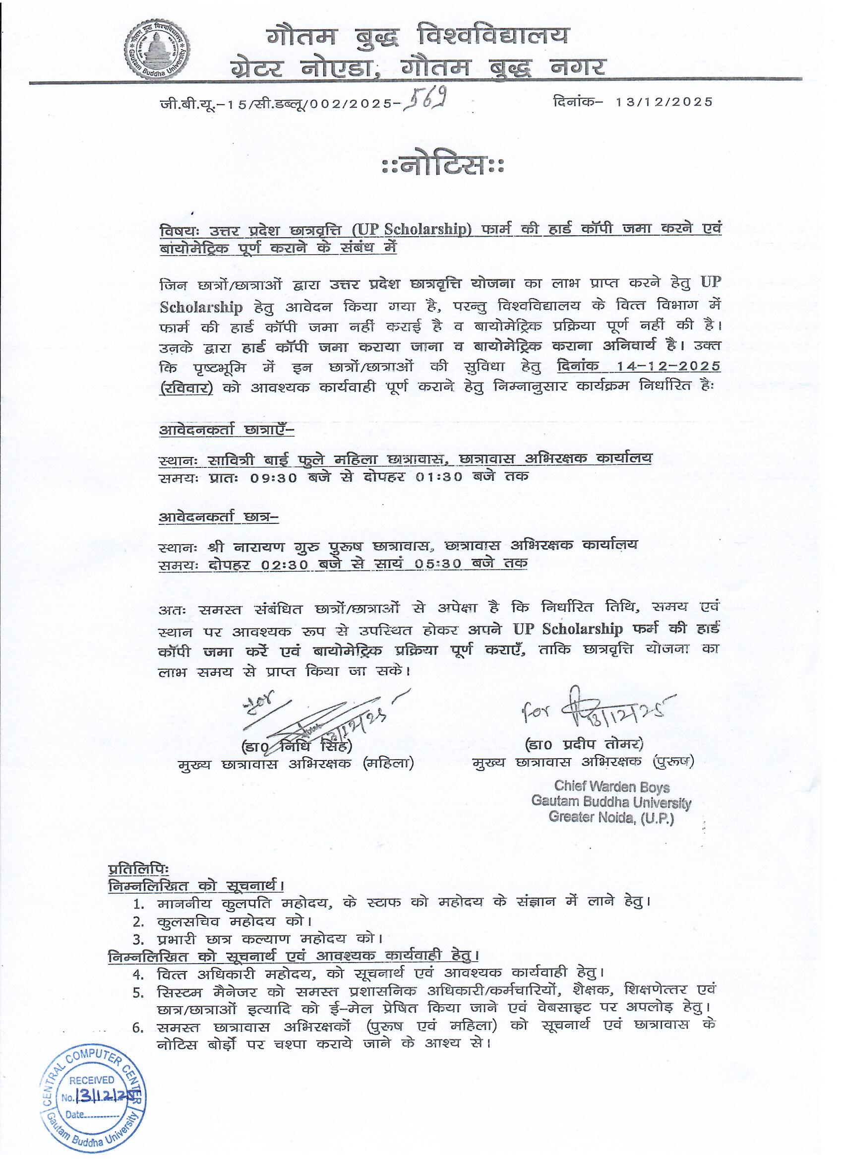 Mandatory Biometric Authentication & Submission of Final Printout for UP Scholarship 2025–26