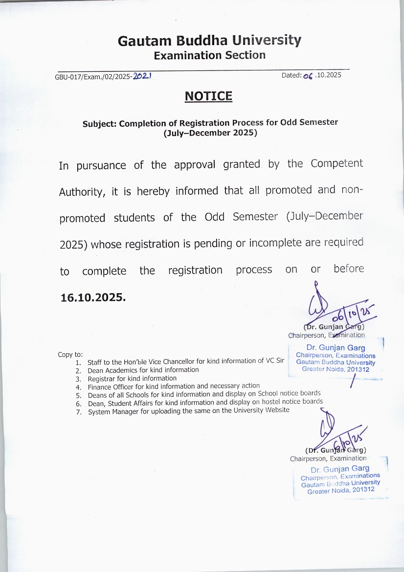 Notification of Registration for Session 2025-26 (Odd Semester)